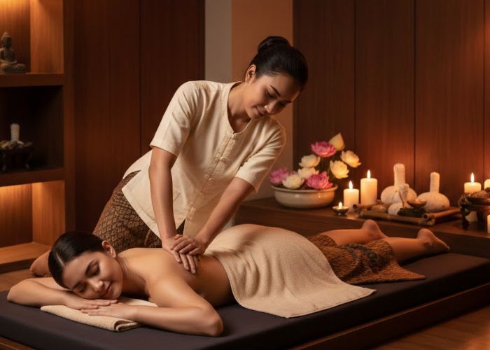Thai massage combines stretching techniques, acupressure, and rhythmic movements. It helps improve flexibility, energy flow, and posture, making it ideal for people with an active lifestyle.