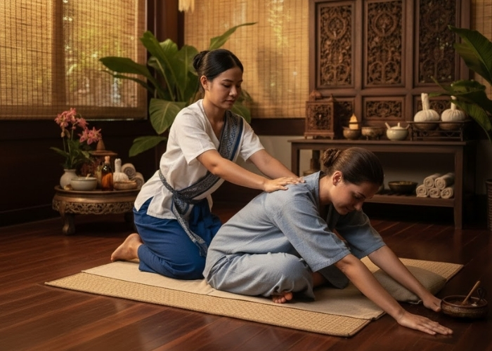Thai massage is generally safe, but people with recent injuries, pregnancy, or medical conditions should consult before booking.